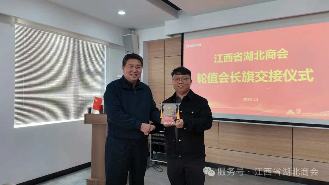 2025年1月2日下午,副会长、一月轮值会长冯晶晶从理事、十二月轮值协值成厚灼手中接过“轮值会长旗”,同时也接过作为轮值会长的使命与责任。会长徐高平,秘书长罗红明出席。